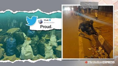 In the video, the group of men are seen picking papers, sweeping the litter and putting them in big plastic bags for disposal in spite of the chilly weather. Shiraz Sheikh Babu was one of the volunteers and is an alumnus of JMI, presently working as a research associate. Babu told indianexpress.com that after the protests came to an end they noticed the litter and decided to clean it.