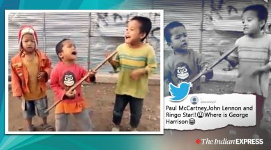 In the video going viral across social media platforms, the adorable trio is seen performing with great attitude and vigour while singing in unison in their humble clothes. The lead singer is seen with a big wooden stick in his hand, as he sings aloud mimicking it as his guitar.