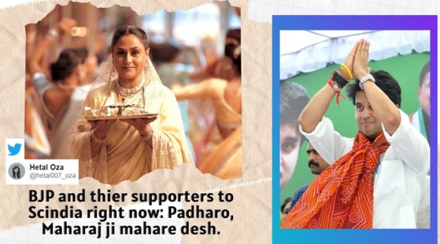 BJP and thier supporters to Scindia rn: Padharo, Maharaj ji mahare desh. pic.twitter.com/nk9k1mNpif— Hetal Oza (@hetal007_oza) March 10, 2020