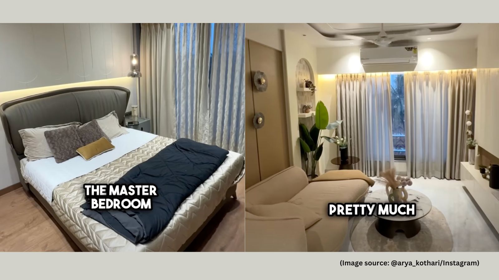 The tour also included a look at the two bedrooms, kitchen, and a compact balcony, a feature many consider a luxury in space-constrained Mumbai homes (Image source: @arya_kothari)