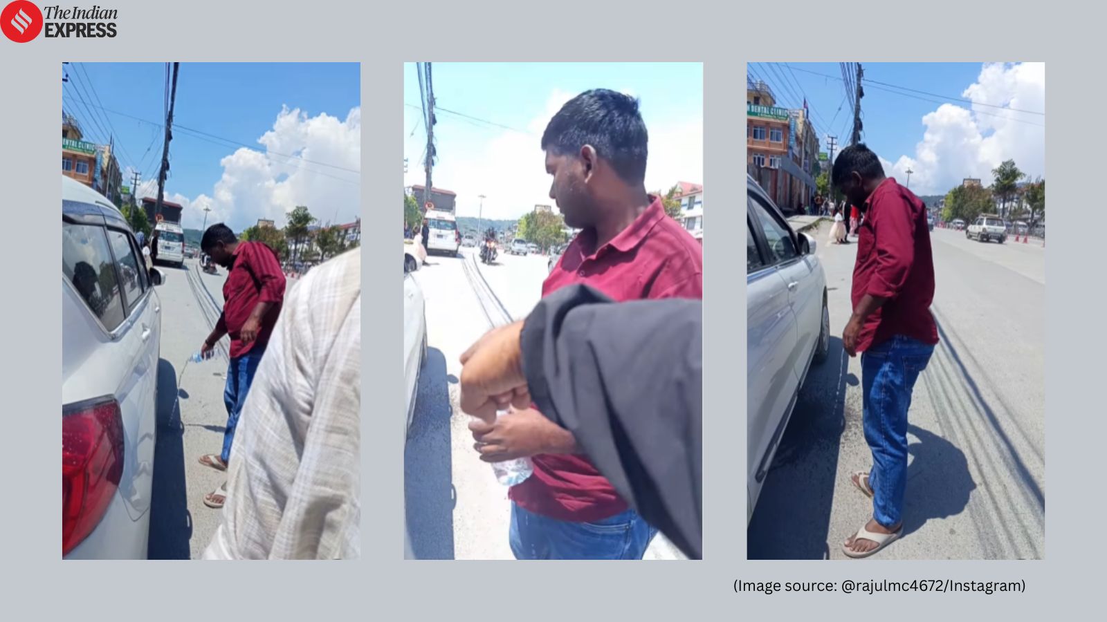 The tourists, clearly uncomfortable, apologise several times. However, Lamichhane insists that words aren’t enough. He repeatedly asks them to wash the area properly, saying, “Ek bottle paani dalo udhar (Pour a bottle of water over there),” making sure they follow through.