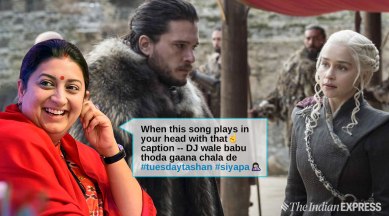 The video shows characters from Game of Thrones mouthing the lyrics of the hit song. But it was the minister’s caption accompanying the video that stole the show: “When this song plays in your head with that ☝️ caption — DJ wale babu thoda gaana chala de #tuesdaytashan #siyapa 🤦🏻♀️”