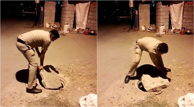 A police official from Bengaluru is getting a lot of praise online for going beyond the call of duty and covering an open manhole on his own to ensure the safety of commuters. When he spotted the open manhole, the constable decided not to wait till civic officials reached the spot, and used a big stone to cover it. Now, photos of the constable are going viral.