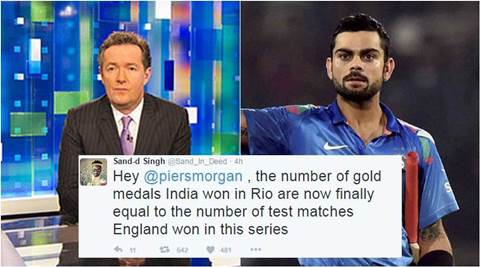 Clearly, Indians don’t forget and a user reminded Piers Morgan of his biting tweet against India. “Hey @piersmorgan , the number of gold medals India won in Rio are now finally equal to the number of test matches England won in this series,” wrote @Sand_In_Deed.