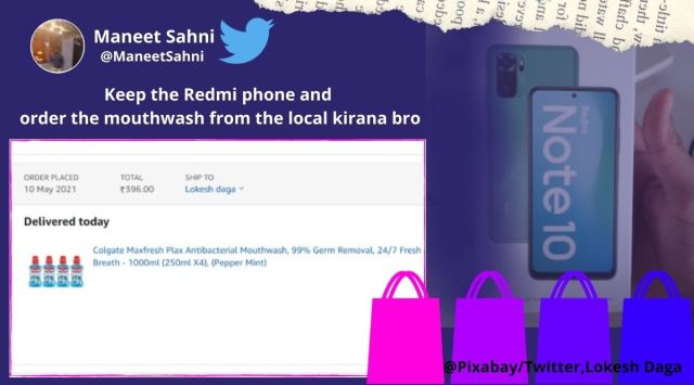 Taking to Twitter, User Lokesh Daga tagged both the e-commerce giant and the Smartphone company, detailing the goof up.A Mumbai-based man ended up being quite lucky when he placed an online order with Amazon for mouthwash and ended up receiving a Redmi Note 10 instead.