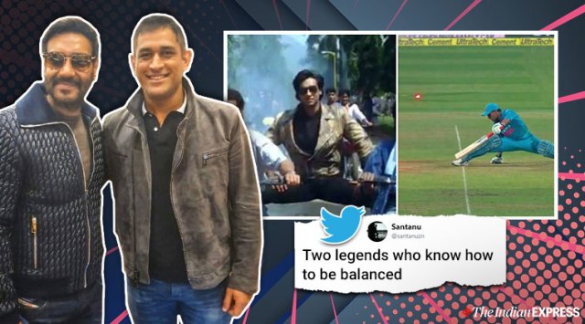 Many drew a parallel between the actor and the cricketer, sharing images of Devgn’s famous scene from Phool aur Kaante and Dhoni stretching to save his wicket.