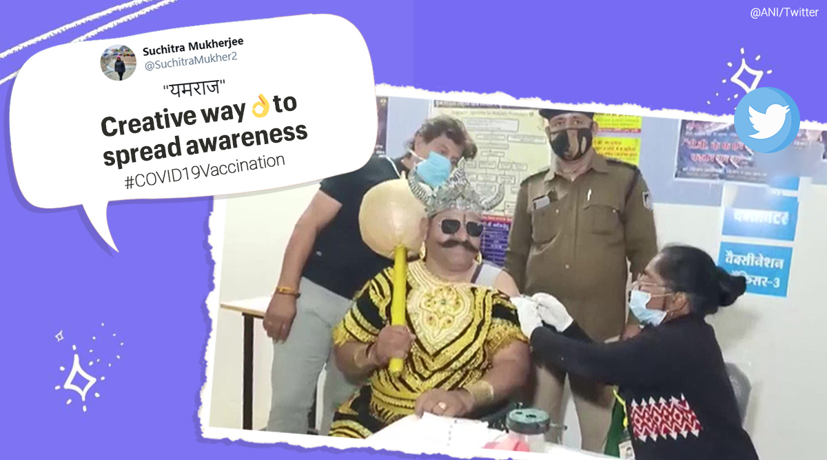 In a quirky campaign, a policeman in Indore dressed up as Yamraj and got vaccinated.