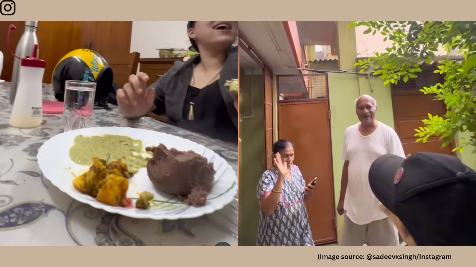 The man approaches a house and requests the woman at the door if he can have breakfast at their home (Image source: @sadeevxsingh/Instagram)