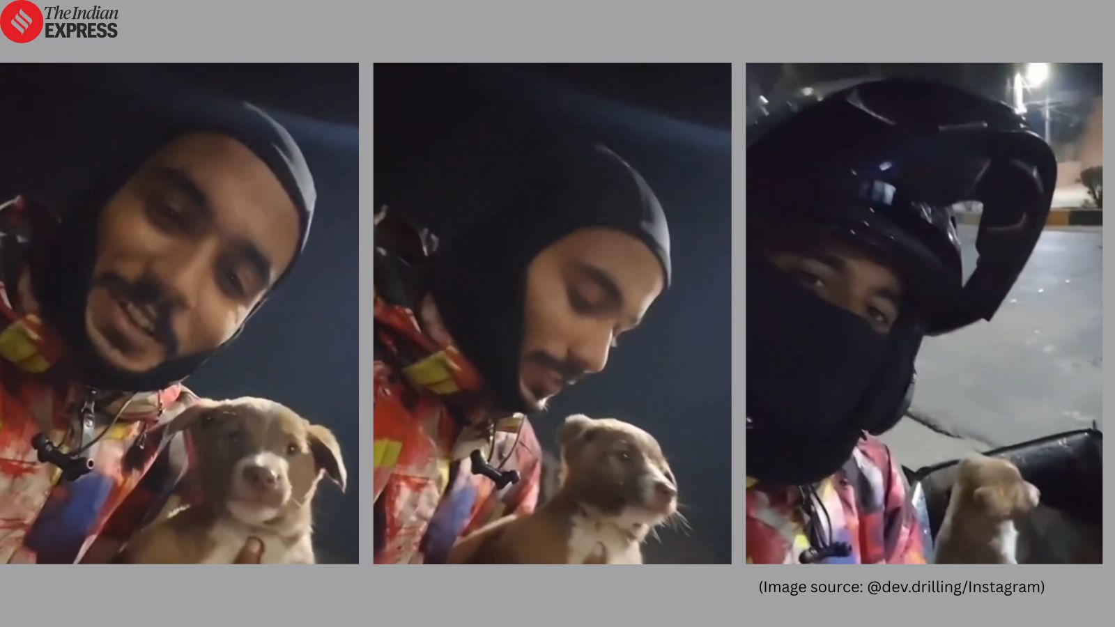 The rider, Dev, named the puppy Duggu after adopting him