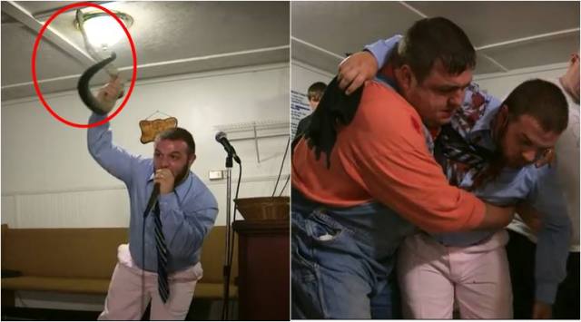 A snake-handling pastor in America's Kentucky was attacked by a rattlesnake during a service. The haunting moment was caught on camera and recently was shared in a newly released documentary by the Barcroft TV. Cody Coots, the pastor at the Full Gospel Tabernacle in Jesus’ Name church in Middlesboro - one of America’s only remaining snake-handling churches, was bitten by the irked animal on his face. The daunting footage shows Coots' shirt splattered in blood as he keeps singing. According to Barcroft, after being bitten he asked,"to be taken to the mountaintop where God will judge whether he lives or dies." However, friends from his church rushed him to the hospital, as he seemed quite affected by the venom. [Disclaimer: Video contains disturbing contents, viewers discretion is advised] Watch the video here: Snake-handling churches started appearing in the Appalachian Mountains over a hundred years ago, the report added. And it's just Coots alone, his father who was a pastor too was bitten by a rattlesnake and killed in 2014.