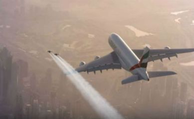 In this video, two jetmen can be seen flying in formation with a superjumbo Emirates A380. Reportedly, the men in the video are Swiss Yves Rossy – known by his fans as Jetman – and Vince Reffet, another renowned stuntman. The stunt was carefully choreographed and shot from 1000ft above the ground, reports Engadget.