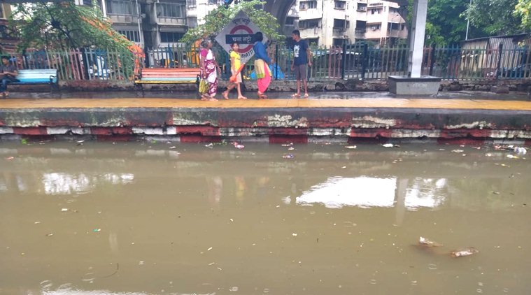 Kalyan railway station waterlogged following incessant rain in the city.