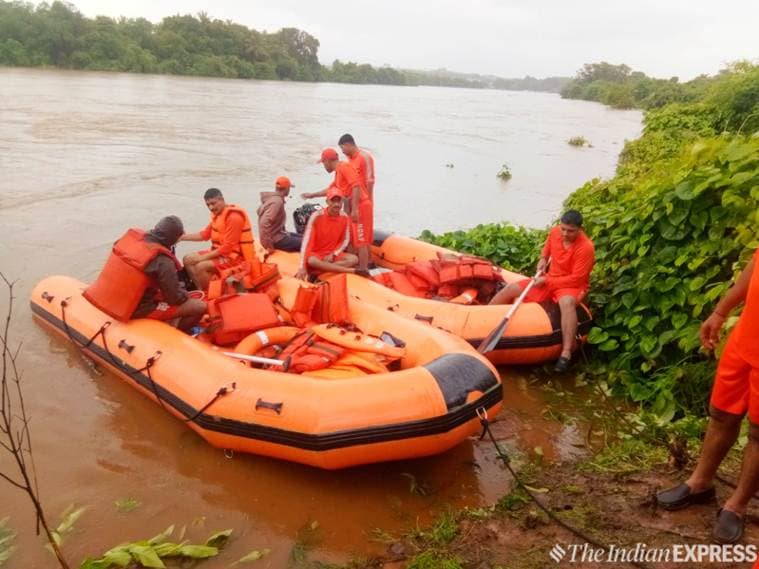 Based on the assessment of evolving situation and prediction of rainfall by IMD, teams of NDRF airlifted from Vadodara, Gujarat will land in Mumbai and will be deployed in following districts of Maharashtra— one team each in Aurangabad, Ahmednagar, Kolhapur and Ratnagiri. Meanwhile, Barvi dam is levelled at 72.5 m at 11 pm, still at danger mark but the flow has reduced, district officials informed.
