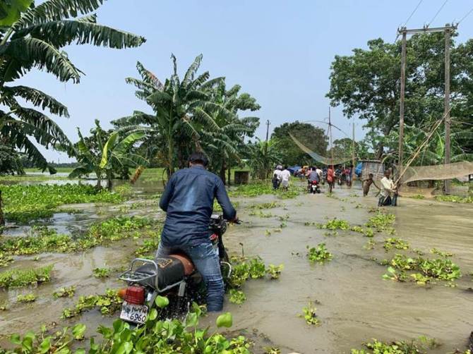 The water level in Kolakhowa Gozal village in Dibrugarh, Assam after the rain stopped.