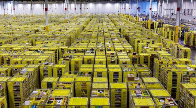 Shelves with products are organized and moved around inside of the Amazon Fulfillment Center in Carteret, N.J., Oct. 18, 2018. The company had long struggled to gain traction in China despite operating there for more than a decade. (Demetrius Freeman/The New York Times)
