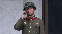 A N Korean soldier looks through a pair of binoculars. (Source: Reuters)