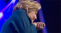 Hillary Clinton ducks as an object is thrown on stage during an address to members of the Institute of Scrap Recycling Industries during their annual convention. (AP)