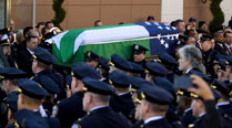 Officer Dustin Lindaman of the Waterloo Police Department flew from Iowa to attend the funeral.