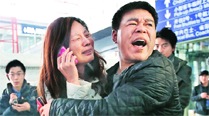 Relatives and friends were arriving at Beijing airport for news after a Malaysia Airlines Boeing 777-200 was reported missing on a flight from Kuala Lumpur to Beijing Saturday. (AP)
