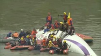 About 10 Taipei fire agency divers were looking for any more bodies that may be at the cold river bottom. A crane was used to bring the rear section of the plane to the shore Wednesday night. The fuselage was largely dismantled by hydraulic rescue tools and now lay alongside recovered luggage.