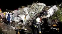 Rescue workers survey the wreckage of TransAsia Airways flight GE222 which crashed while attempting to land in stormy weather on the Taiwanese island of Penghu. (Source: AP)