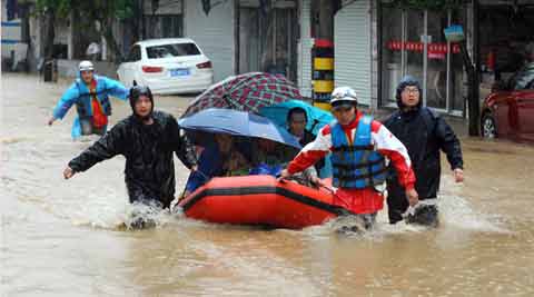 Typhoon Chan-hom slammed ashore with winds of up to 160 kilometers (100 miles) per hour near Zhoushan, a city east of the port of Ningbo in Zhejiang province. It has dumped more than 100 millimeters (4 inches) of rain since late Friday — about a month’s average in less than 24 hours, China Central Television and the Xinhua News Agency reported.