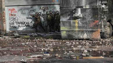 There were further, massive marches around the country, triggering more clashes with police and soldiers. In a poor area of Santiago, protesters were pictured hijacking a city bus to ram into a department store.