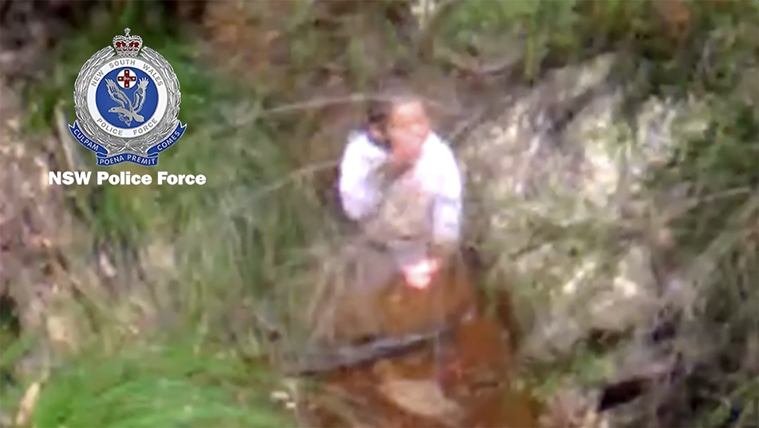 The crew of a police helicopter spotted him sitting in shallow water in a creek bed late Monday morning about 470 meters (1,540 feet) from his home, Police Superintendent Tracy Chapman said.