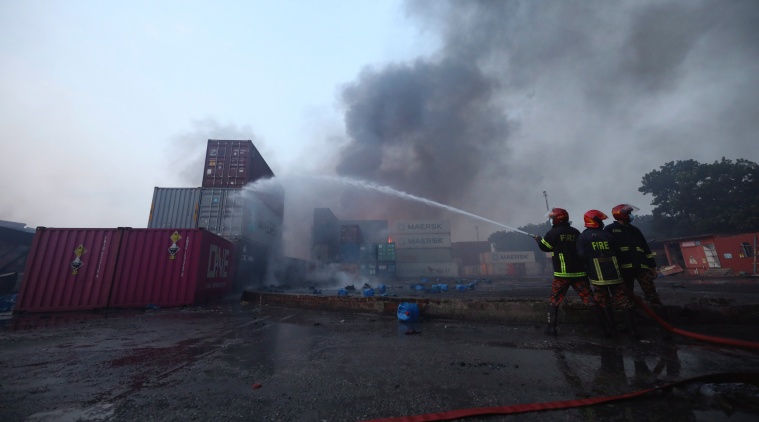 A fire rages at the BM Inland Container Depot, a Dutch-Bangladesh joint venture, in Chittagong, 216 kilometers (134 miles) southeast of capital, Dhaka, Bangladesh, early Sunday, June 5, 2022. (AP/PTI) A massive fire and a series of subsequent explosions at a private chemical container depot in southeastern Bangladesh killed at least 49 people, including nine firefighters, and injured more than 450 others, officials said on Sunday, as firefighters were still struggling to put out the blaze.
