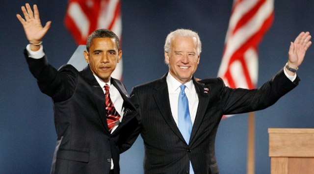 Former US President Barack Obama and Joe Biden wave to supporters after speaking at Obama’s election night rally after being declared the winner of the 2008 US Presidential election in Chicago, US November 4, 2008. (REUTERS/File Photo)