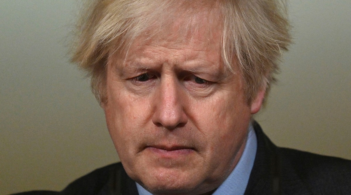 Britain's Prime Minister Boris Johnson looks down as he leads a virtual press conference on the Covid-19 pandemic, from inside 10 Downing Street in central London Tuesday Jan. 26, 2021. (Justin Tallis, Pool via AP)
