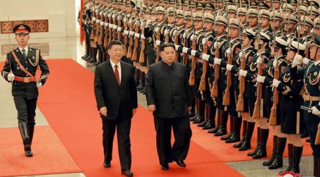 Chinese Premier Xi Jinping and North Korea leader Kim Jong Un in Beijing. KCNA/via Reuters