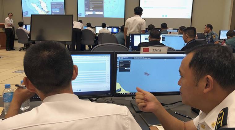 Singapore’s navy hosted the drills at a training center in Changi naval base, where officers coordinated their force deployments and helicopter landings on navy ships. They monitored developments on three giant screens, including one showing the location of a collision between an oil tanker, which supposedly caught fire, and a passenger ship that sank and scattered people in the high seas.
