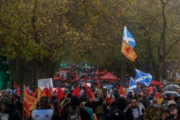 But the focus Saturday was in Glasgow, where authorities closed off several dozen streets to manage the protests.
