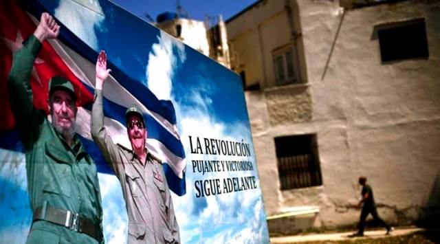 A poster of Fidel Castro and Cuba’s President Raul Castro stands in Havana, Cuba, Wednesday, April 18, 2018. The Cuban government on Wednesday selected 57-year-old First Vice President Miguel Mario Diaz-Canel Bermudez as the sole candidate to succeed Raul Castro in a transition aimed at ensuring that the country’s single-party system outlasts the aging revolutionaries who created it. (AP Photo/Ramon Espinosa)