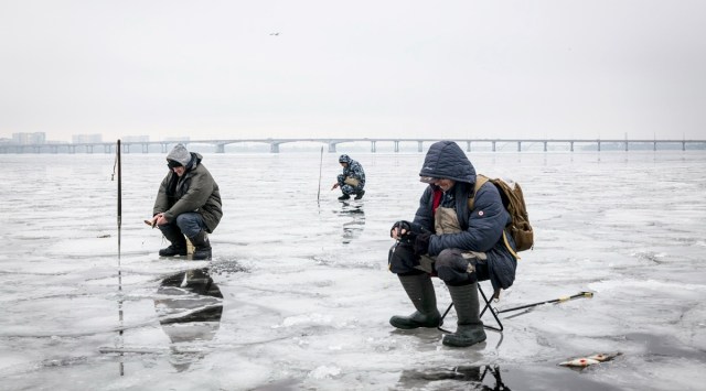 Ice fishing on the Dnieper River in Dnipro, Ukraine on Jan. 17, 2023. (Nicole Tung/The New York Times) Written by Marc Santora