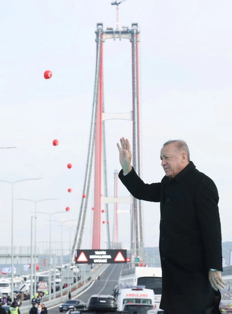 Turkish President Tayyip Erdogan attends opening ceremony of the 1915 Canakkale Bridge over the Dardanelles, in Canakkale, Turkey March 18, 2022. Presidential Press Office/Handout via REUTERSPresident Tayyip Erdogan opened a massive suspension bridge across Turkey’s Dardanelles Strait on Friday, the latest in a series of major infrastructure projects which he has prioritised during his two decades in power.