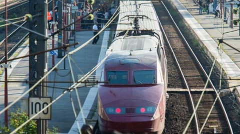 A Thalys train of French national railway operator, SNCF, stands at the main train station in Arras, northern France after a gunman opened fire injuring three people, Friday, Aug. 21, 2015. (AP Photo)