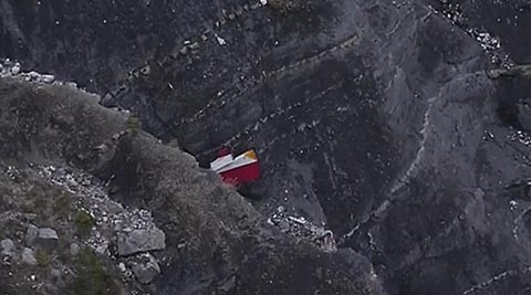 Video shot from a helicopter and aired by BFM TV showed rescuers walking in the crevices of a rocky mountainside scattered with plane parts. Photos of the crash site showed white flecks of debris across a mountain and larger airplane body sections with windows. A helicopter crew that landed briefly in the area saw no signs of life, French officials said.