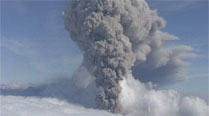 In this file picture taken from video of a column of ash rising from Iceland’s Eyjafjallajokul volcano on 8 May 2010. Iceland has raised its aviation alert level for the risk of a possible volcanic eruption to orange _ the second-most severe level. (AP Photo)