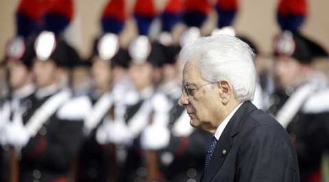 Italian President Sergio Mattarella reviews the honor guard during a ceremony to mark Italy’s Liberation day, in Rome Saturday, April 25, 2015. (AP Photo)