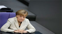 German Chancellor Angela Merkel called Wednesday for the European Union to put new sanctions against Russia into effect immediately because peace plans for eastern Ukraine have not yet been implemented fully.