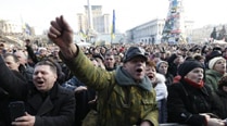 Crowd chanting “Rossiya! Rossiya!” and waving the Russian tricolour. (Reuters)