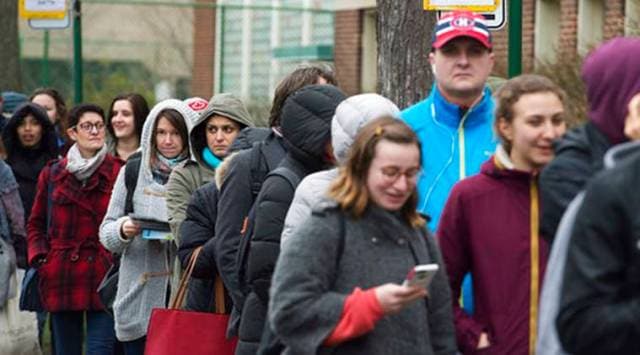 Amid heightened security, French voters began casting ballots for their next president today in a first-round poll that's being seen as a litmus test for the future of Europe and the spread of populism around the world. More than 50,000 police and gendarmes were deployed to protect 66,000 polling stations for today's election, which comes just three days after a deadly attack on Paris's famed Champs-Elysees Avenue in which a police officer and a gunman were slain. Another 7,000 soldiers are on patrol. The presidential poll is the first ever to be held while France is under a state of emergency, put in place since the November 2015 attacks in Paris left 130 people dead. Voters are choosing between 11 presidential candidates in the most unpredictable contest in generations. The current president, Socialist Francois Hollande, is not among them, having decided that his historic unpopularity would hurt his party's cause. "We really need a change in this country, with all the difficulties we are facing and terrorism," Paris resident Alain Richaud said as he waited to cast his vote. "There have been surprises (this year), there have always been scandals," said Le Touquet resident Pierre-Antoine Guilluy. Opinion polls point to a tight race among the four leading contenders vying to advance to the May 7 presidential runoff, when the top two candidates will go head to head. Polls suggest far-right nationalist Marine Le Pen and Emmanuel Macron, an independent centrist and former economy minister, were in the lead. But conservative Francois Fillon, a former prime minister embroiled in a scandal over alleged fake jobs given to his wife and children, appeared to be closing the gap, as was far-left candidate Jean-Luc Melenchon. France's 10 percent unemployment, its lackluster economy and security issues topped concerns for the country's 47 million eligible voters. Voter Marie-Christine Colrat lamented: "Listen, too many candidates. And candidates that caused us a lot of problems, I think that's not a good thing for France." The election is widely being seen as a vote on the future of the European Union with most of the French candidates railing against its institutions. Both Le Pen and Melenchon from opposite extremes of the political spectrum have supported pulling France out of the 28-nation bloc and its shared euro currency in a so-called "Frexit." A French exit, however, could spark a death spiral for the EU, for France and Germany are the bloc's strongest economies and biggest proponents of a united Europe. If either Le Pen or Melenchon wins a spot in the runoff, it wi ll be seen as a victory for the rising wave of populism reflected by the votes for Brexit in Britain and Donald Trump in the United States. "It's definitely risky, but I have faith in the result even if an extreme candidate qualifies for the second round," said Beatrice Schopflin, who was queuing to vote in Paris. Macron and Fillon are committed to European unity and would refor m the country's restrictive labor rules. The sun glistened across most of France today as voters and candidates cast their ballots. France's Interior Ministry said voter turnout at midday was 28.54 percent slightly stronger than it was in 2012, when turnout was high. In the northern town of Henin-Beaumont, several activists from the feminist group Femen were arrested after staging a topless protest against the far-right Le Pen. Police intervened and stopped the commotion minutes before the candidate arrived to cast her ballot. No one was hurt. Macron was the image of serenity as he posed for selfies with voters after casting his ballot in the northern coastal town of Le Touquet alongside his wife, Brigitte Macron. Melenchon voted in Paris, as did Fillon. But Fillon's wife, the scandal-hit Penelope Fillon, was conspicuously absent from her husband's side and voted 250 kilometers (155 miles) away near their 14th century manor house in Sarthe. She is facing preliminary charges for her role in the fake jobs scandal that has rocked her husband's presidential campaign. Hollande, the current president, voted in his political fiefdom of Tulle in Correze, southwestern France. Political campaigning was banned from midnight Friday hours ahead of polls opening in France's far-flung overseas territories such as Guadeloupe, French Polynesia and French Guiana, which all voted Saturday. In Montreal on Saturday, thousands of French nationals waited in lines that stretched at one point up to eight blocks long to cast their votes, with many saying they were motivated to help keep the far-right out of power. The interminable queue that lasted several hours was caused by lack of polling stations — only one was set up for the estimated 57,000 registered French voters in Canada's most populous French-speaking city. One retired American in Paris urged her neighbors to make their voices count. "I think that it's important that every French voter gets out and votes today . did you see what happened in the United States? The same could happen here," said Renette Decicco, a 78-year-old out shopping for food.