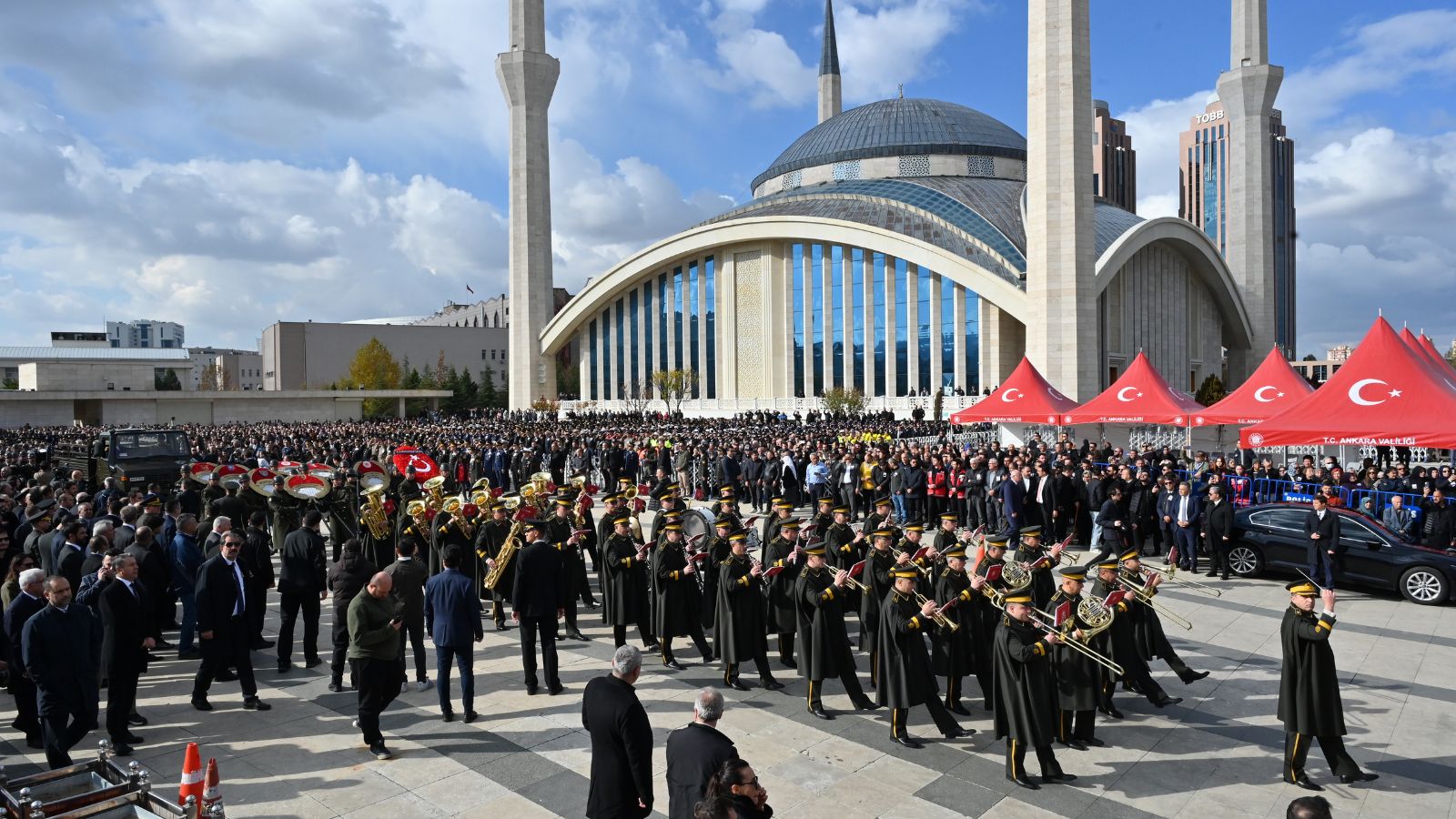 Authorities and family members attend the funeral of Turkish military personnel Umit Ince, Cem Dolapci and Cuneyt Kandemir, who died in a plane crash in Georgia, at the Ahmet Hamdi Akseki mosque, in Ankara, Friday, Nov. 14, 2025. (AP Photo) Turkey held a funeral ceremony Friday for 20 military personnel who died when a C-130 transport plane crashed in Georgia earlier this week.