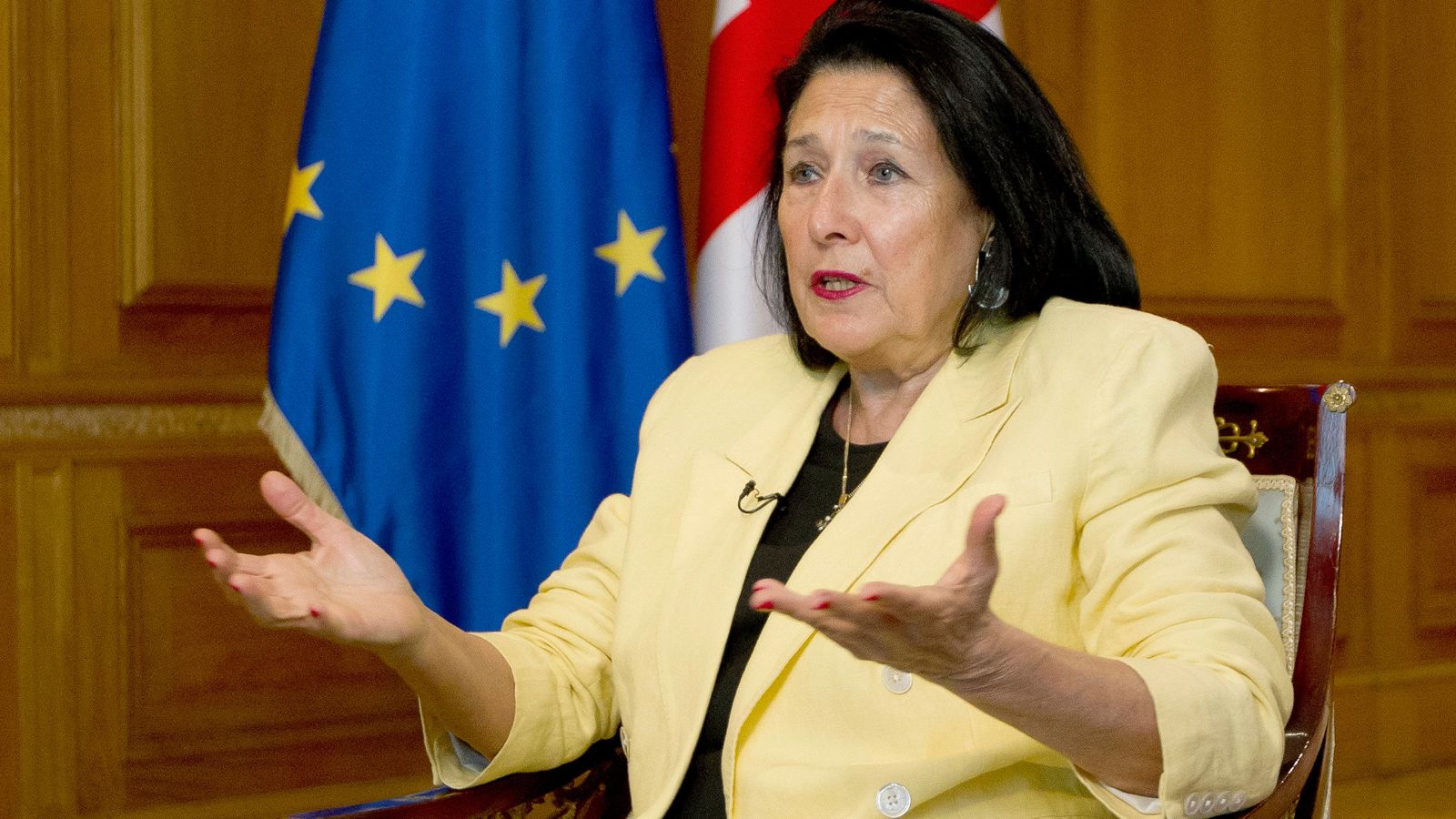 Georgian President Salome Zourabichvili said Thursday that a "foreign influence" bill passed by parliament that critics call a threat to free speech is "unacceptable." (AP Photo)