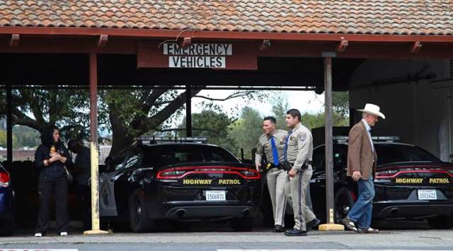 California Highway patrolmen arrive at the Veterans Home of California in Yountville, Calif., on Friday March 9, 2018. (AP Photo/Ben Margot)