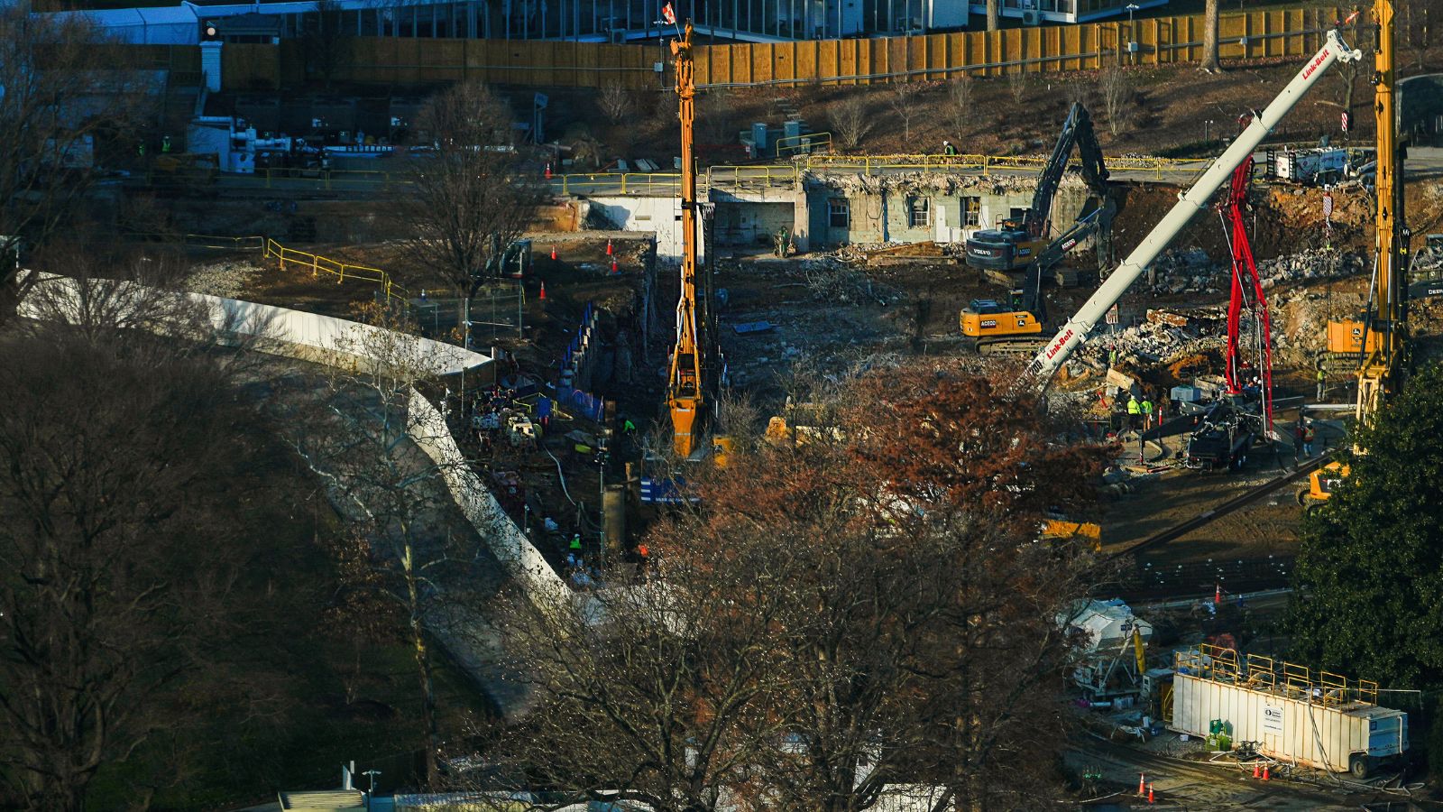 Work continues on the construction of the ballroom at the White House where the East Wing once stood, Tuesday, Dec. 16, 2025, in Washington. (AP Photo/Julia Demaree Nikhinson)
