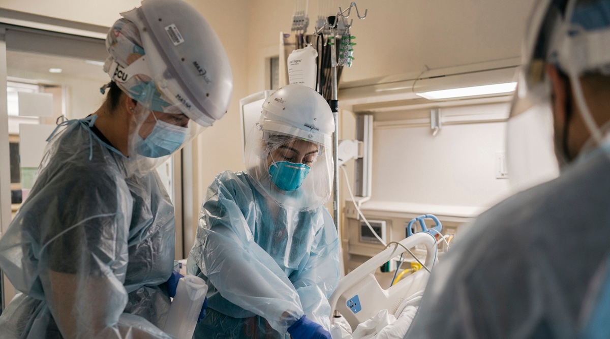 Nurses treat a COVID-19 patient in Santa Monica, Calif., July 27, 2021. Among Americans under age 50, average daily hospital admissions have hit a pandemic high, according to the latest data from the Centers for Disease Control and Prevention. (Isadora Kosofsky/The New York Times)