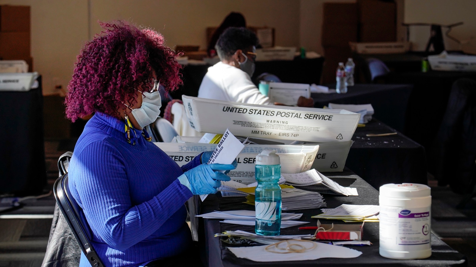 Mail-in ballots are processed in Atlanta. The election interference case against President Donald Trump in Georgia was dismissed in late November 2025, but the ghosts of the 2020 election are still looming over the state as next year's midterms approach. (New York Times) The election interference case against President Donald Trump in Georgia was dismissed last week, but the ghosts of the 2020 election are still looming over the state as next year’s midterms approach.